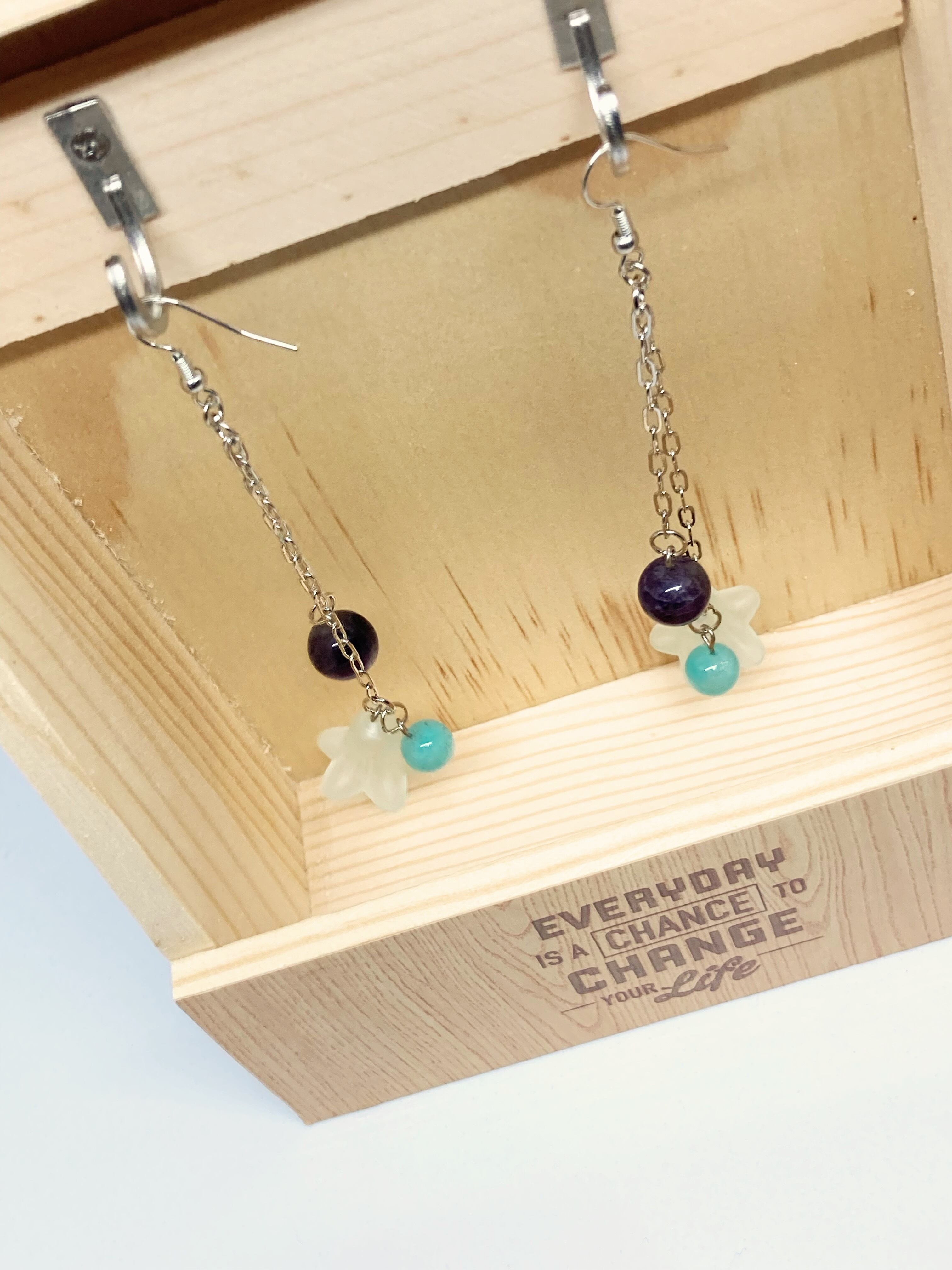 恋愛運up♡アメジスト&アマゾナイトチェーンピアス