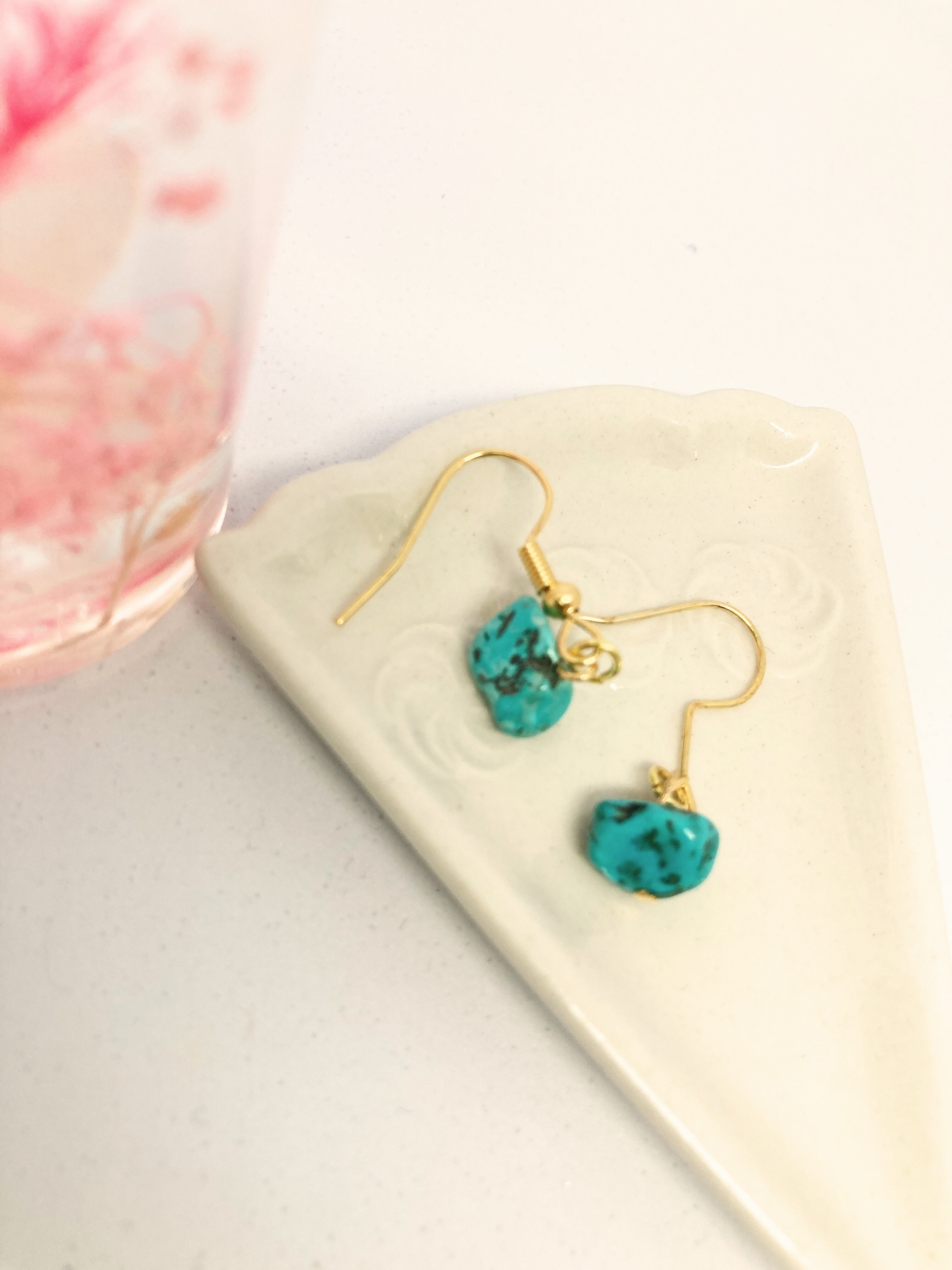 ターコイズのシンプルピアスは、その美しいブルーカラーと神秘的な輝きです。